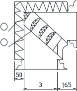 本产品的应用范围广,其弯头内均装有导风消声片,消声效果好。凡风管截面之B 值>500 弯头内均装有导风消声片,其结构相似,B 越大消声效果越佳。短臂弯头的局部阻力系数值 G <1.0.风管内风 速不宜过大,一般在 8m/s 左右为宜最大不得超过12m/s。